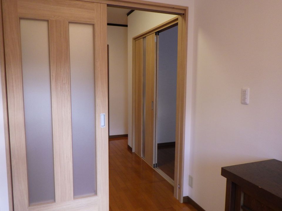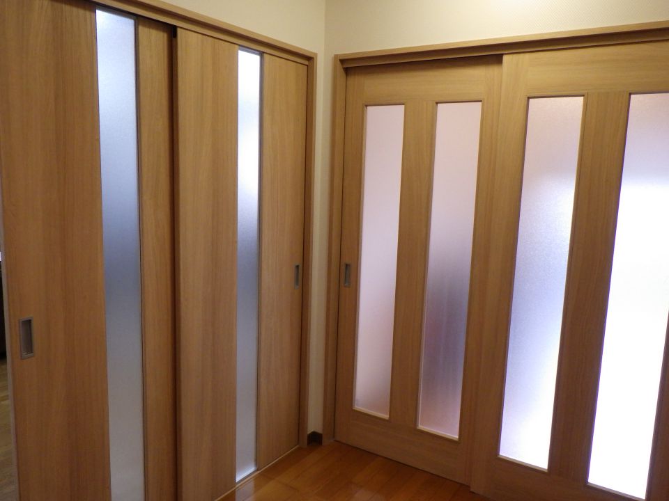 いつも石崎工務店のホームページをご覧いただきありがとうございます。 今回は内装建具取替・新設のお写真です。 玄関を入って広いスペースが有効に使えておらず、トイレの入口が玄関から丸見えなので建具を新設しました! 取替は親子扉だと同時に開閉しずらく、使い勝手が悪いので引戸に改修しました。 改修前