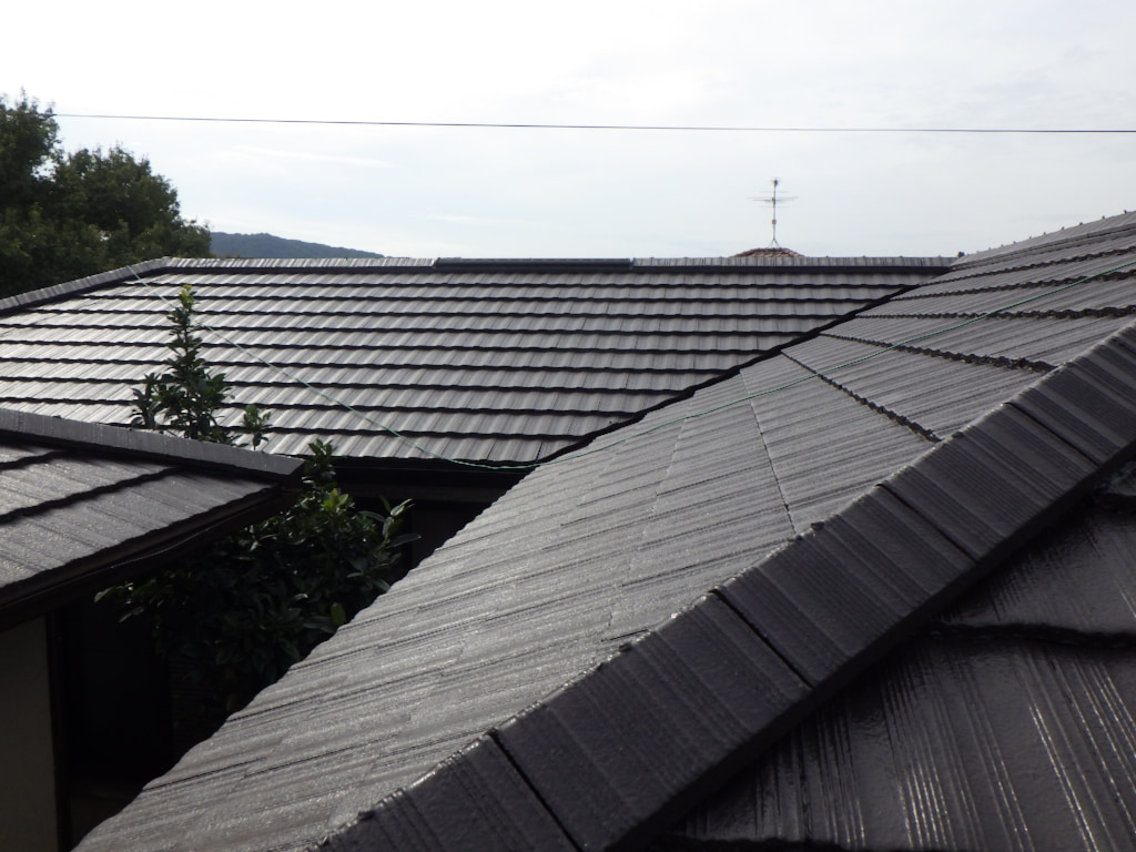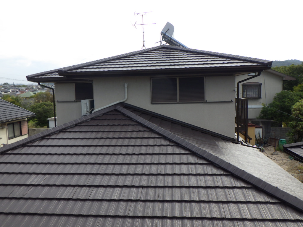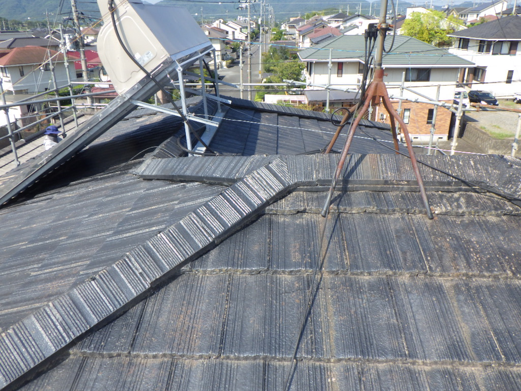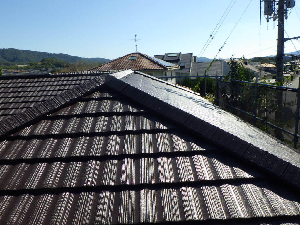 屋根が傷んでるので瓦の葺き替えか、塗替えにしようか悩んでたのですが葺き替えをしないといけない程傷んでも無かったのでコスト的にも抑えれる塗替えになりました。