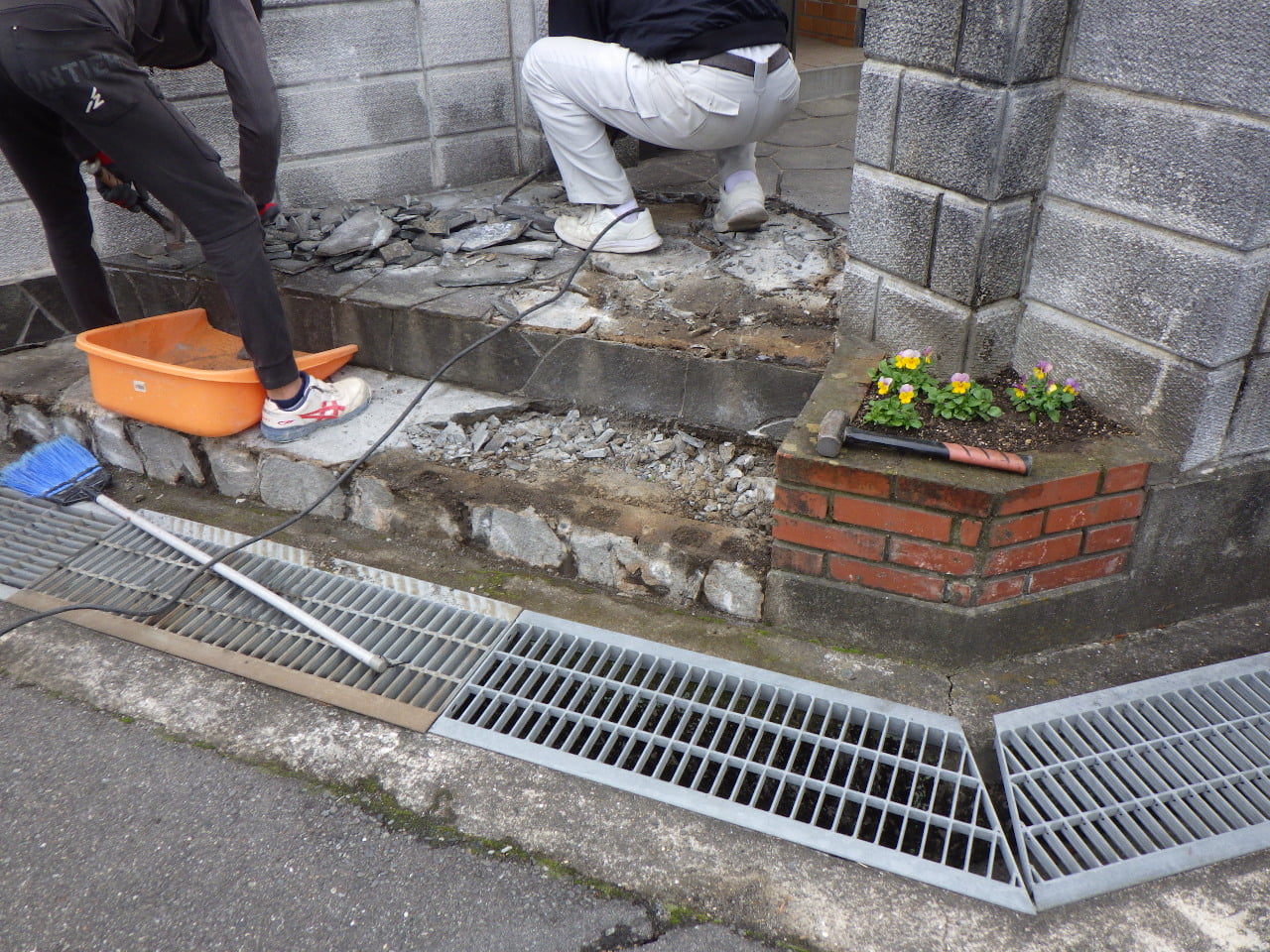 モルタルで下地補修です。