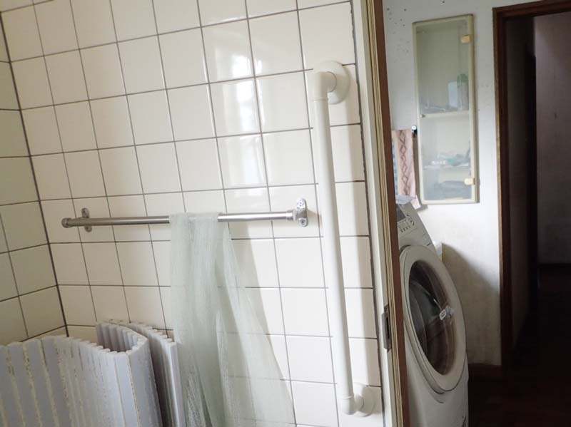 浴室に入るとき、手すりを持っていれば滑って転ぶ・・・不安から解消されます。
